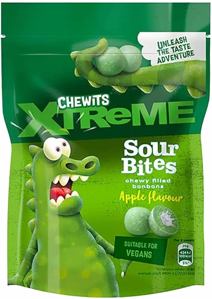 Chewits Xtreme Sour Bites toovad su maitsemeeltele hapuka ja magusa seikluse! 😝 Iga suutäis on täidetud mahlase õunamaitsega, mille keskelt avastad mõnusa nätske südamiku. Vegan-sõbralik ja ideaalne amps energialaengu või lõbusa maiuspala jaoks! 🌱✨