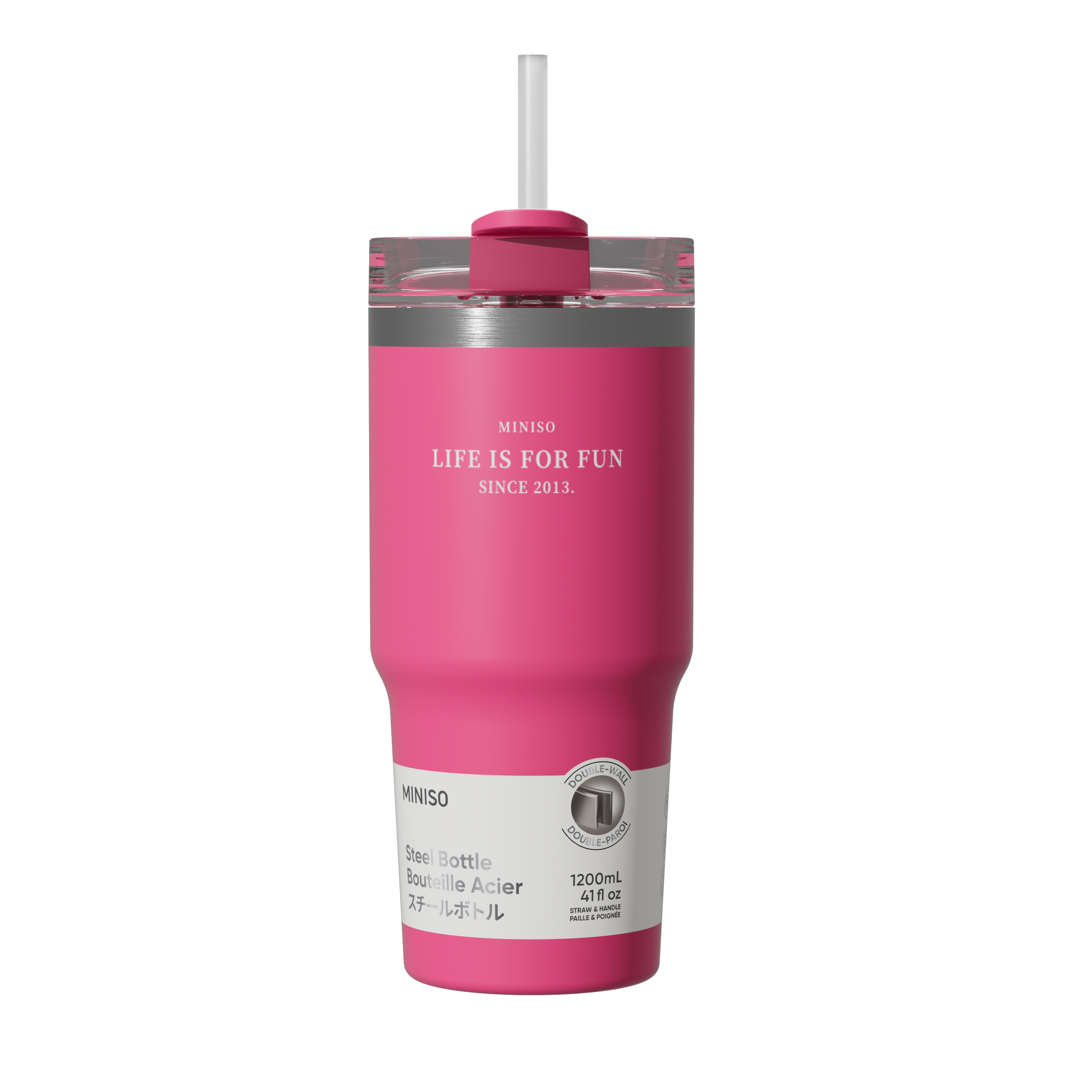 Kahekordne joogitops kõrrega, 490 ml, roosikas