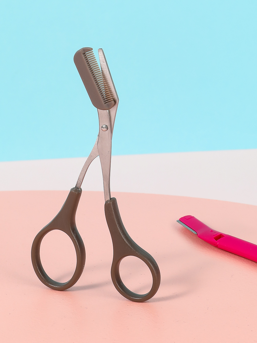 Komplektis on kulmude raseerija + kulmukäärid koos eemaldatava kammiga.